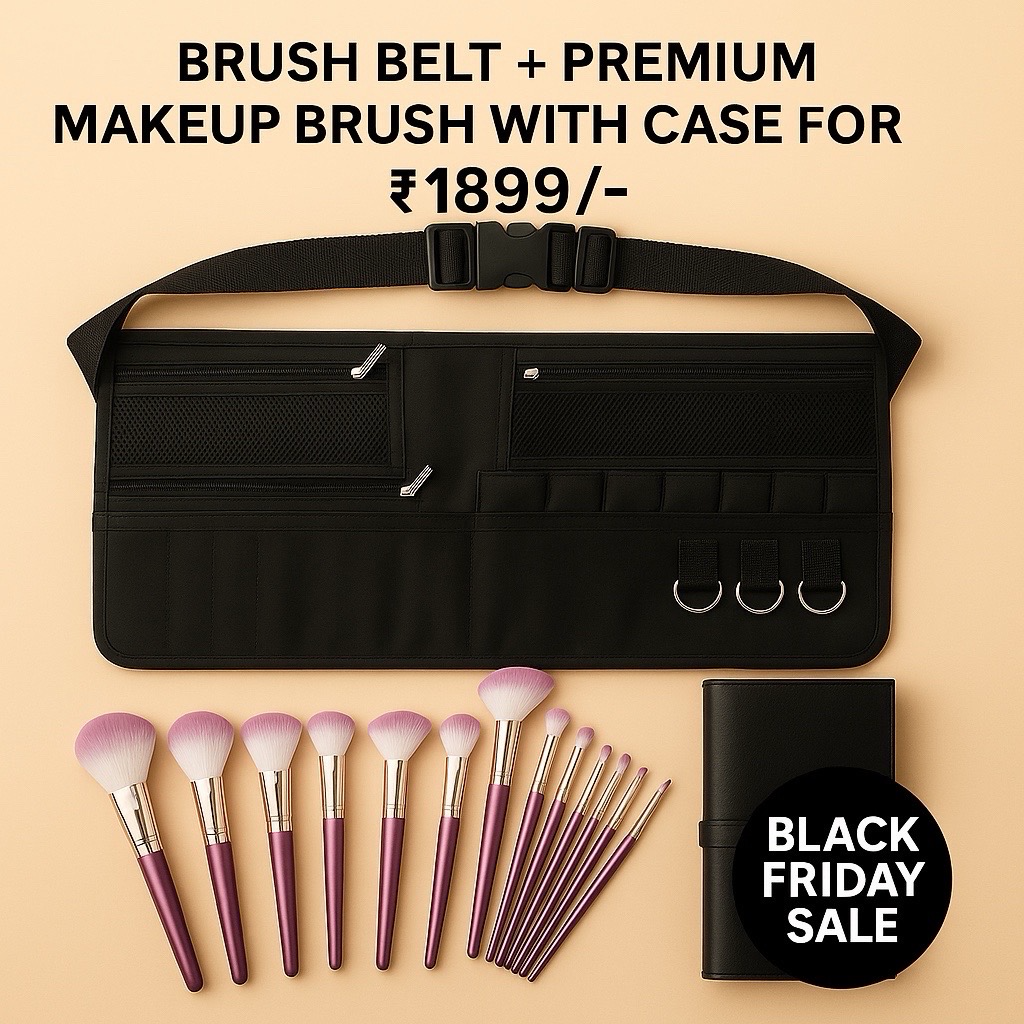 Upgrade your makeup kit with this perfect professional combo, designed for makeup artists, beauty creators, and everyday makeup lovers. This set includes a high-capacity brush belt, a luxurious 14-piece makeup brush set, and a sleek protective brush case.