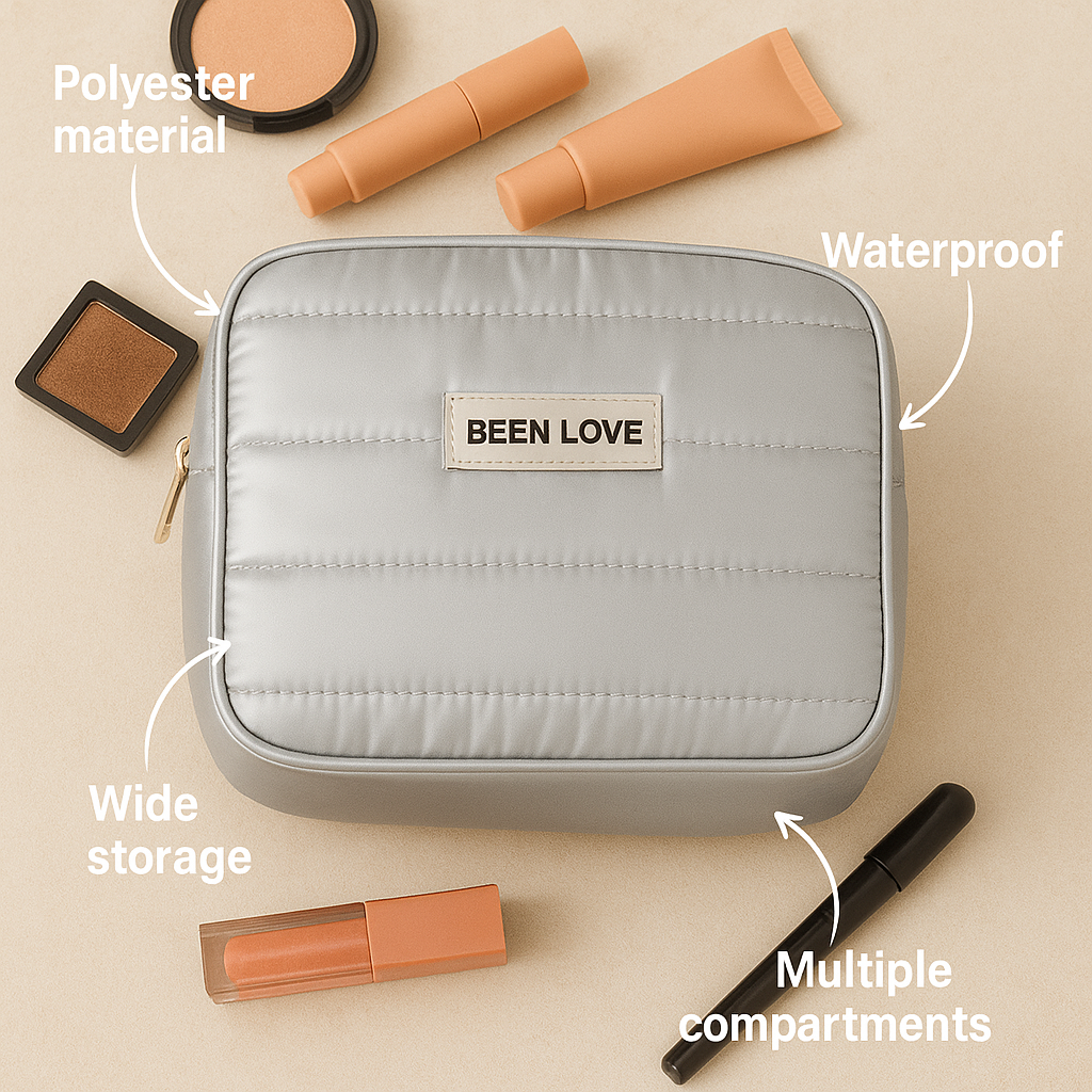 Introducing the Coslifestore Quilted Waterproof Makeup Pouch – the perfect blend of elegance, functionality, and travel convenience. Crafted from high-quality polyester, this sleek quilted pouch is designed to keep your beauty essentials neatly stored and easily accessible whether you're at home, on a vacation, or heading to work.