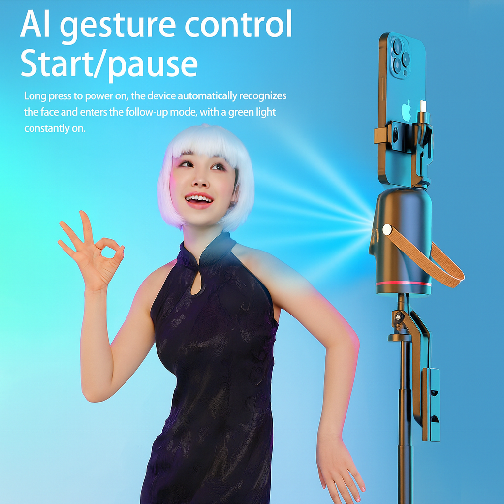 The Q03 features 360° horizontal rotation and AI gesture control, so you can start, pause, or switch tracking with a simple hand signal. Perfect for live streaming, video calls, vlogging, workouts, cooking demos, or any activity where staying centered matters. Its foldable and portable design makes it easy to carry anywhere, while the universal phone clamp ensures compatibility with most smartphones.